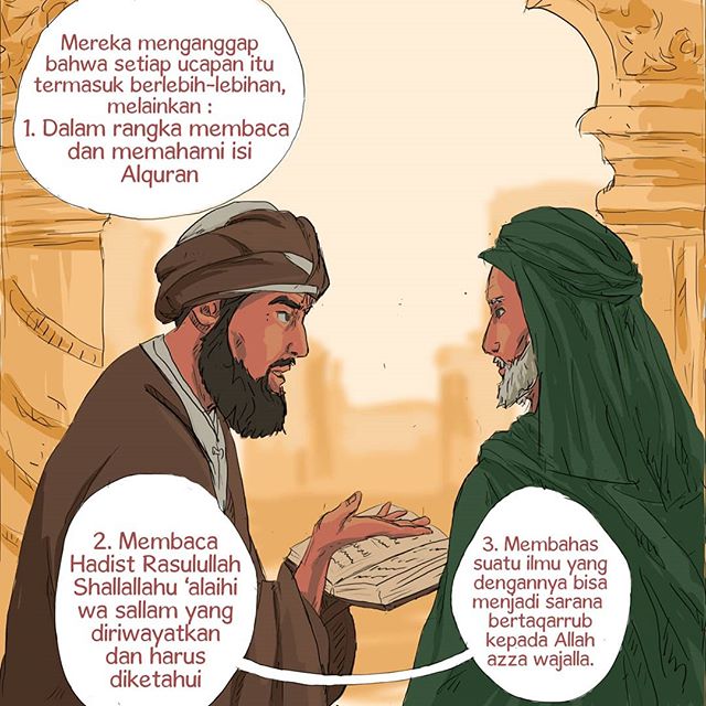 “Wahai putera saudaraku, sesungguhnya orang-orang sebelum kita (para sahabat) tidak menyukai banyak bicara. Mereka menganggap bahwa setiap ucapan itu termasuk berlebih-lebihan melainkan dalam rangka membaca dan memahami Kitabullah, atau membaca Hadist yang diriwayatkan dan harus diketahui, atau membahas suatu ilmu yang dengannya dapat menjadi sarana bertaqarrub kepada Allah, atau memerintahkan kepada hal yang makruf dan mencegah dari perbuatan yang mungkar, atau engkau membicarakan tentang kebutuhan dan pekerjaan yang memang harus dibicarakan.”.